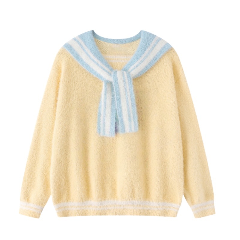 Sweet-Style Sweater with Cute Cape Sailor Collar