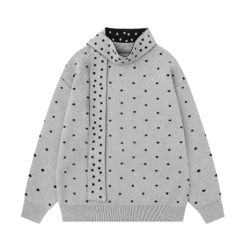 Vintage Pullover Sweater with Polka Dot Heart and Scarf Detail
